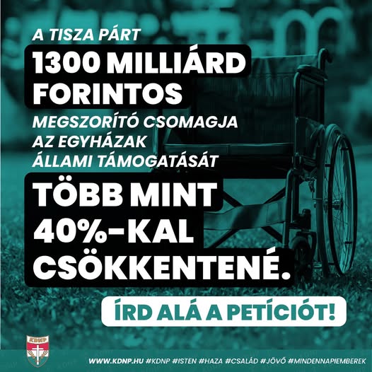A TISZA Párt megszorító csomagja több, mint 40%-kal vágná vissza az egyházak állami támogatását.