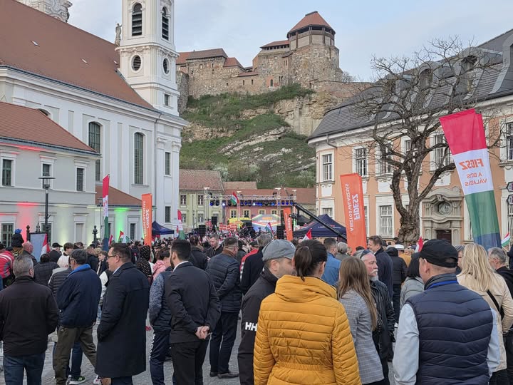 Óriási a hangulat Esztergomban! Hatalmas tömeg várja Orbán Viktort! Esztergomban. Ez egy győztes város lesz!
