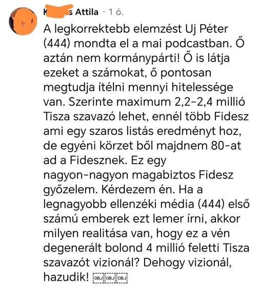 Tudjatok róla, a Tisza soha nem vezetett. Amerikai kampánytrükk, hogy egy pártot szándékosan erősen felülmérnek, hogy a bizonytalanok elhiggyék hogy az a nyertes oldal és oda szavazzanak. De a magyar…
